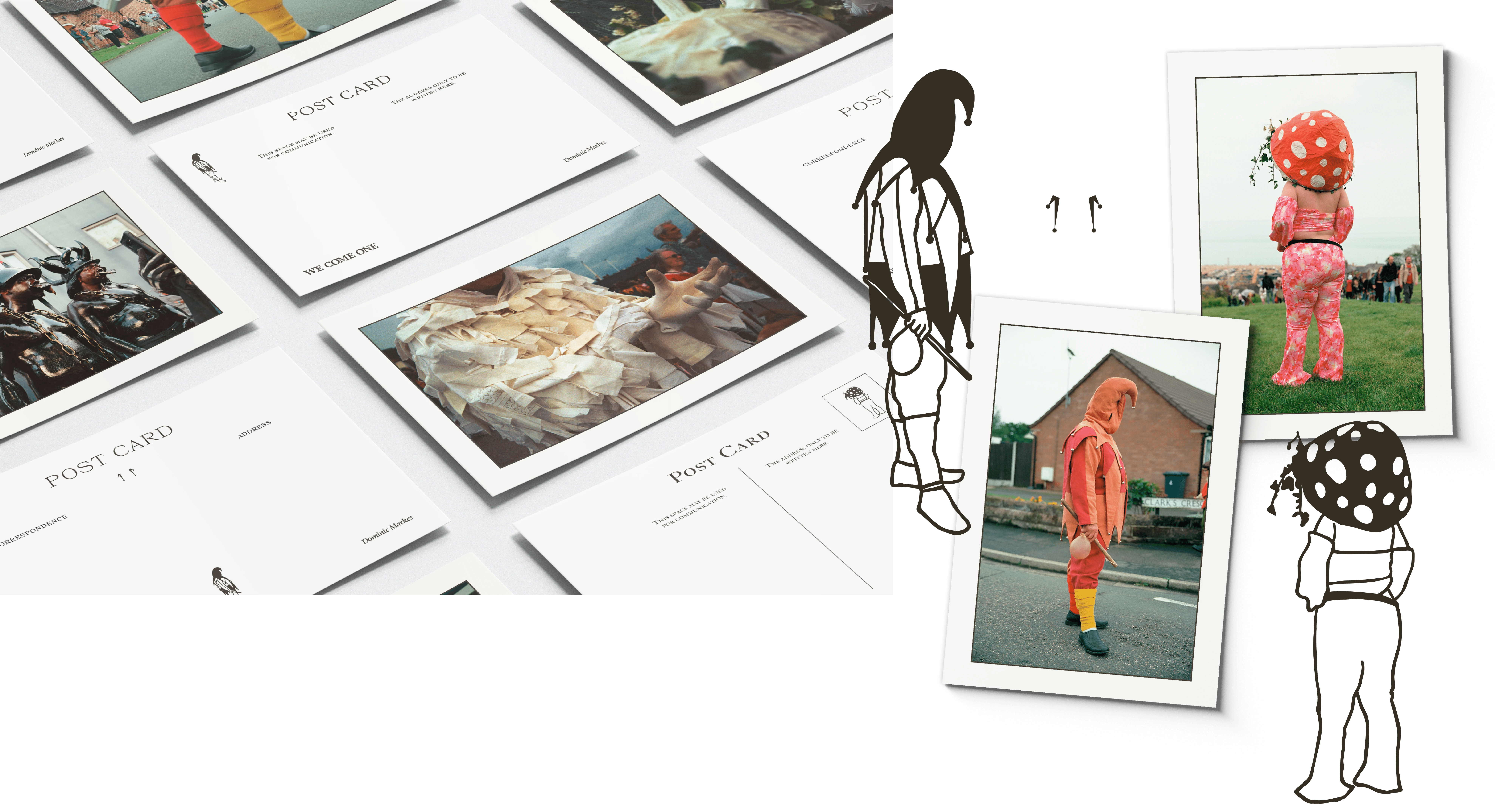 These were featured on the postcard designs along with a symbol inspired by the bells of the fool’s costume. The postcard collections showcased the photography displayed at the exhibition and were available to be purchased by those that attended.
